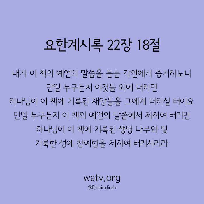 믿음이 크다고 자부해도 성경 말씀에서 더하거나 빼버린다면 구원을 받을 수 없습니다.